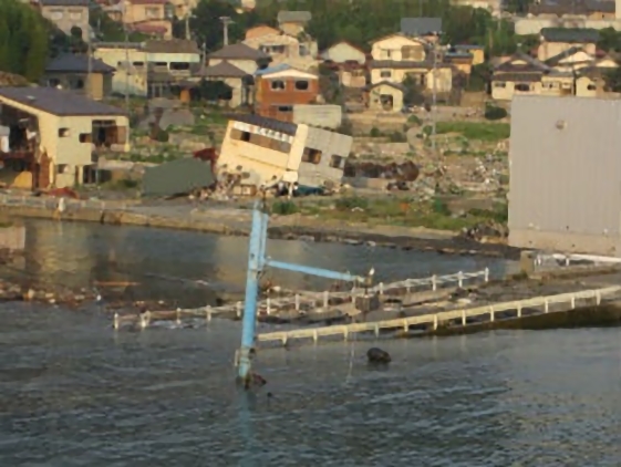 牡鹿半島の港の風景。まだまだ水没している道路が見られた。