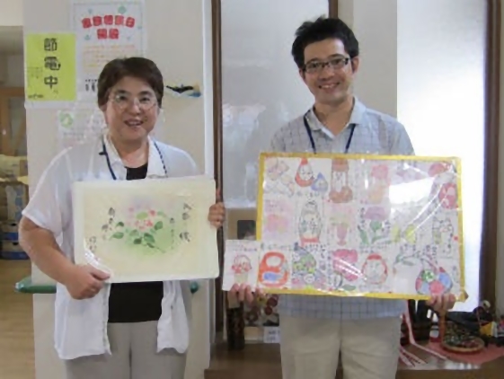 メンバーの手書きの絵や絵はがきを渡しました。職員のみなさんは「今はこういう時期なので心を癒してくれるこのような物が必要なんです」と。