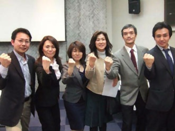 日本再生の心意気合う他団体の方と共にガッツポーズ