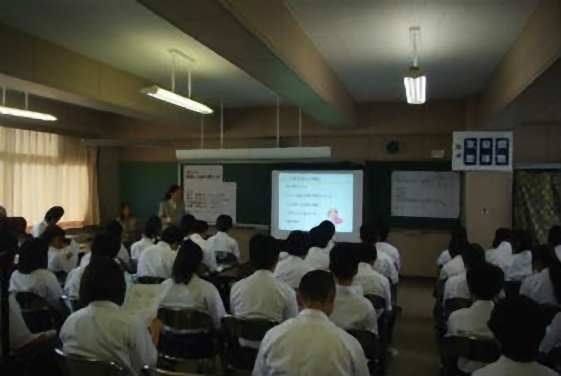 校長先生が全校生徒を前に、この講演会は志教育の一環で、自分で判断できる力を身につけることを目的としていることや、我が団体が協力していることを説明した後、本会メンバーで元大学病院の看護師のSさんの講演が始まりました。