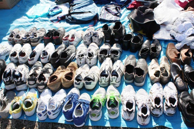 今回も沢山の靴のご提供があり、皆並べるそばから、自分に合うサイズの靴が無いか、注視しています。