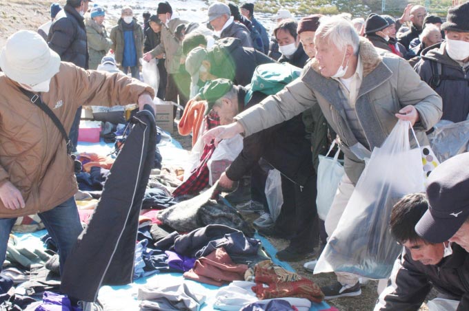 皆、大きな袋一杯に、真心のこもった衣類の提供を受け、寒さ厳しい季節でも、身も心も温かです。